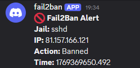 systemctl enable fail2banSetting up alerts to discord